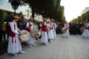 "وهلّلوا وكبّروا تكبيرا صلّوا على محمّد كثيرا" (وترافق هذه الأغنية بفرق الموسيقى المشتملة على آلات هوائية نحاسية وخشبية وآلات الايقاع). وإمّا قريبة من الإيقاعات المستعملة في الموسيقى المتقنة، ومنها: